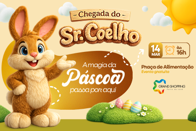 O Sr. Coelho já confirmou presença no Grand Shopping e trouxe com ele uma tarde cheia de magia para a criançada!
