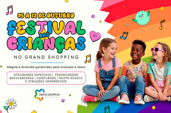 No mês de outubro, o Grand Shopping entra em clima de festa com uma programação especial em homenagem ao Dia das Crianças. Teremos atividades para todos os gostos: uma oficina inspirada no fenômeno Bobbie Goods, um encontrinho exclusivo, além de dois dias de festival no estacionamento com música, brincadeiras, personagens e teatro. Prepare-se para viver momentos mágicos em família!